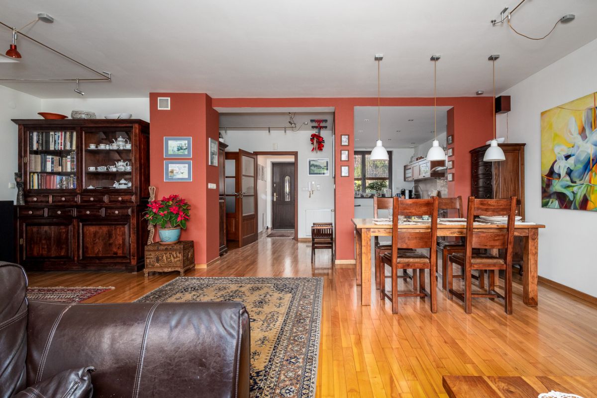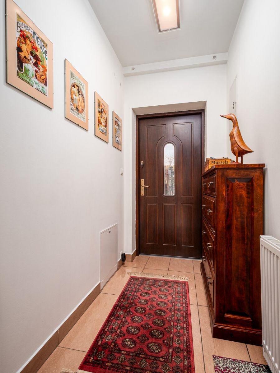 Największym atutem domu jest wyjątkowe położenie działki - ogród graniczy bezpośrednio ze strumykiem oraz naturalnym pasem zieleni, gdzie można obserwować różne gatunki ptaków. To miejsce zapewnia ciszę i prywatność rzadko spotykaną w Warszawie.