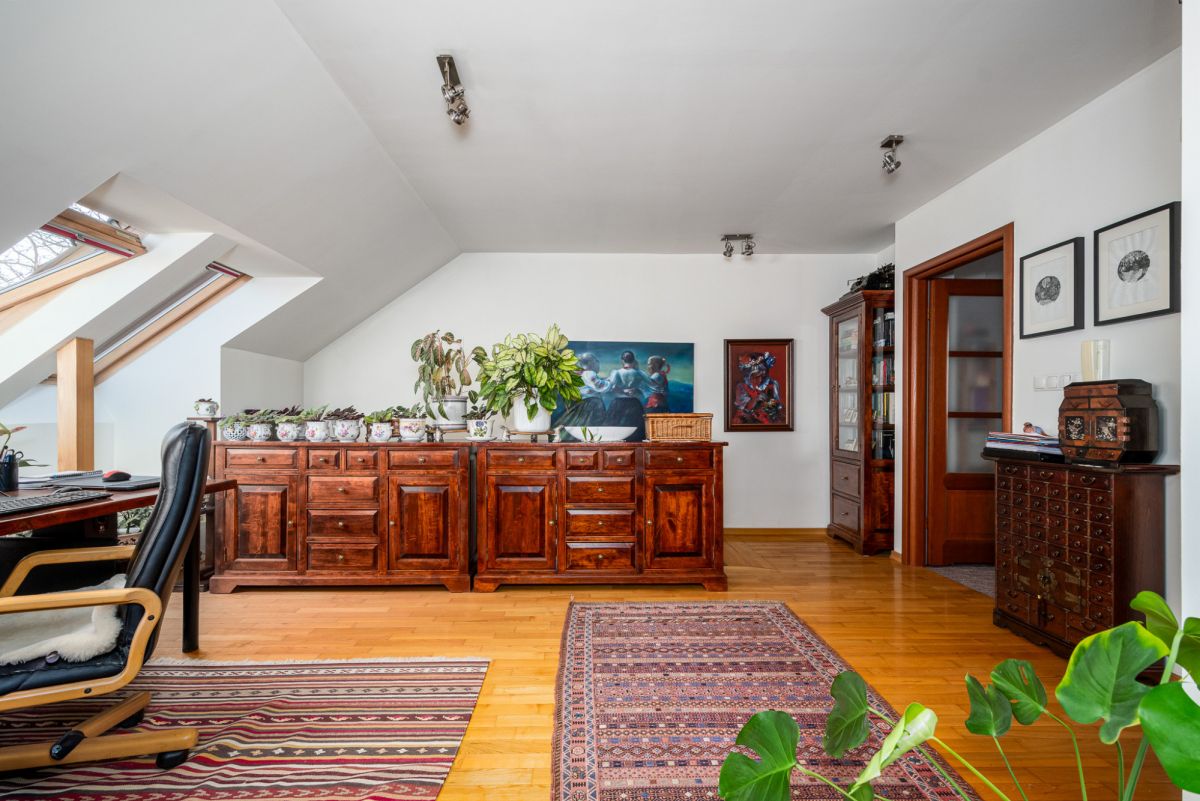 Dodatkową przestrzeń stanowi strych o powierzchni ok. 31 m², idealny na rzeczy sezonowe lub domowy schowek.