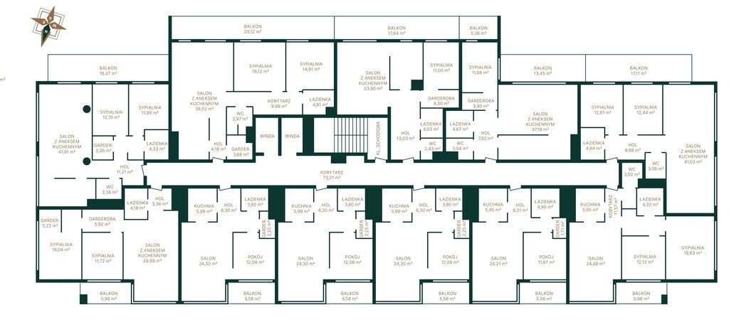 • Ok. 250m2 balkonów.