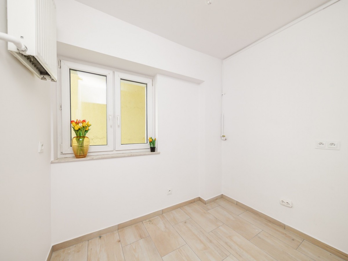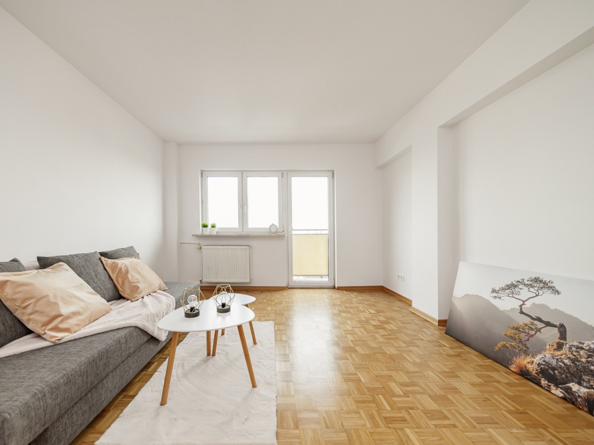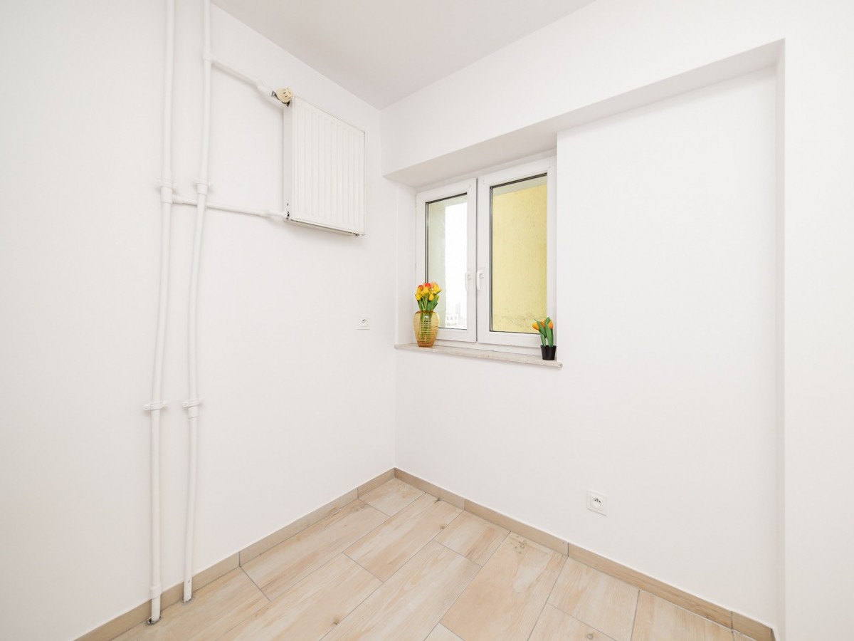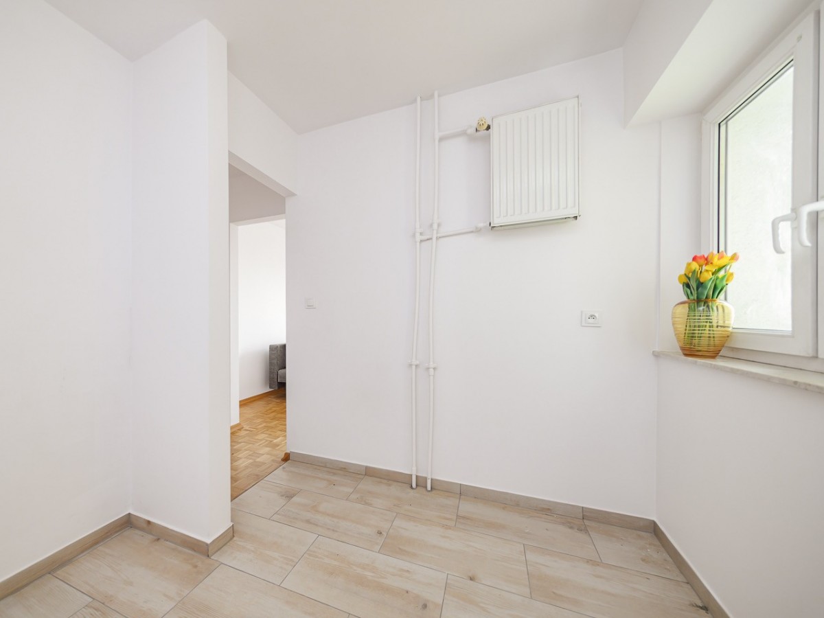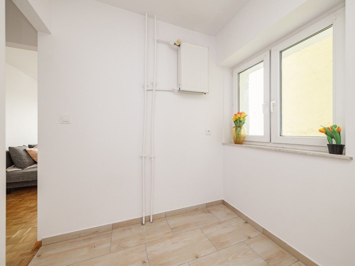 Mieszkanie przeszło częściowy remont — zostały wymienione instalacje elektryczne, na ścianach położono świeżą gładź, wnętrze zostało odmalowane.