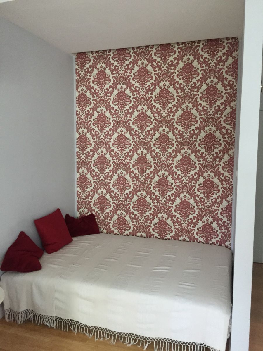 Mieszkanie zaprojektowane jako otwarte studio, z wydzieloną częścią kuchenno - jadalną, wypoczynkową oraz sypialną (dwuosobowe łóżko umieszczone we wnęce.