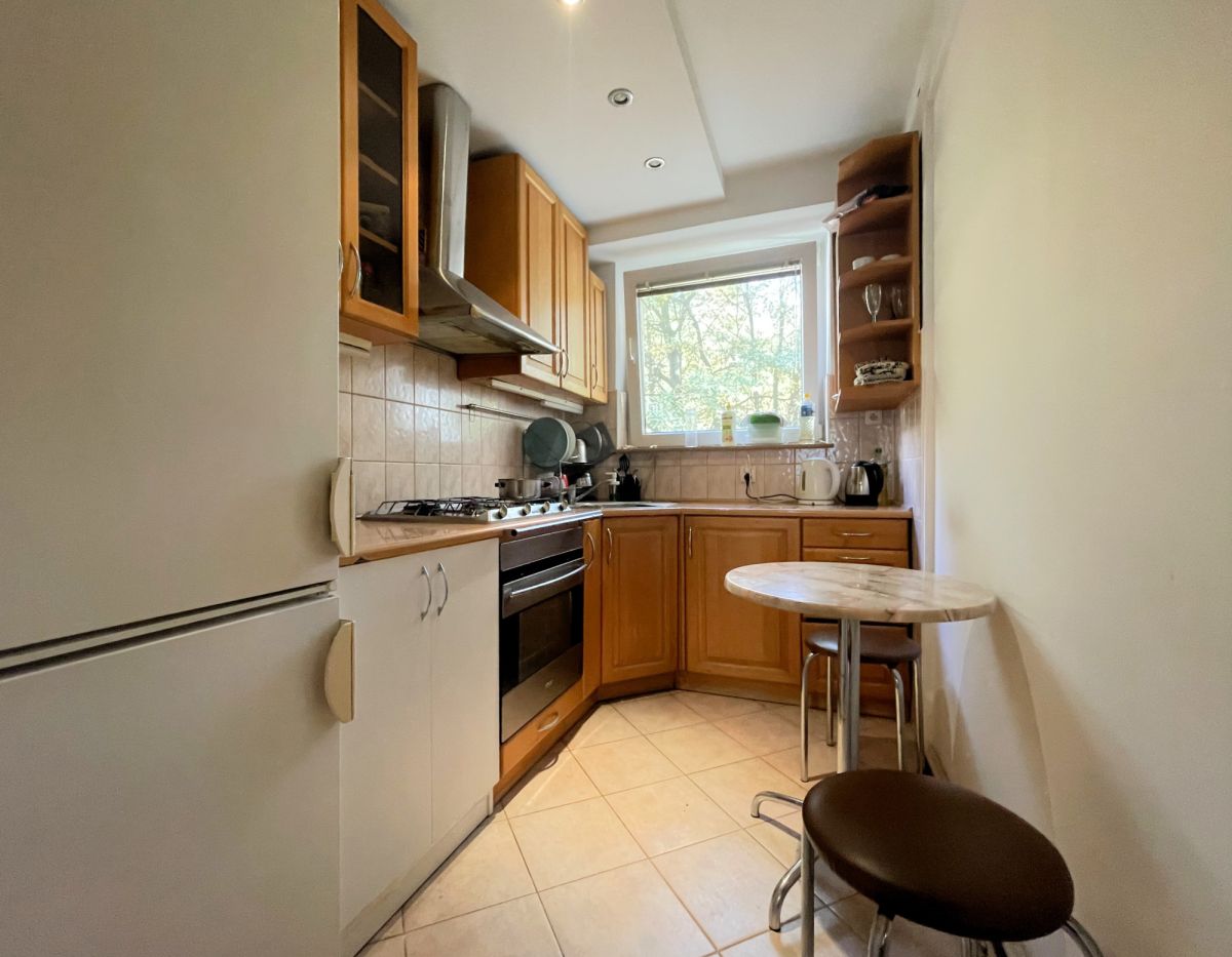 Mieszkanie jest przyzwoitym stanie, łazienka po remoncie, ładny parkiet w dużym pokoju. Do rozważenia szafki w kuchni oraz boazeria.