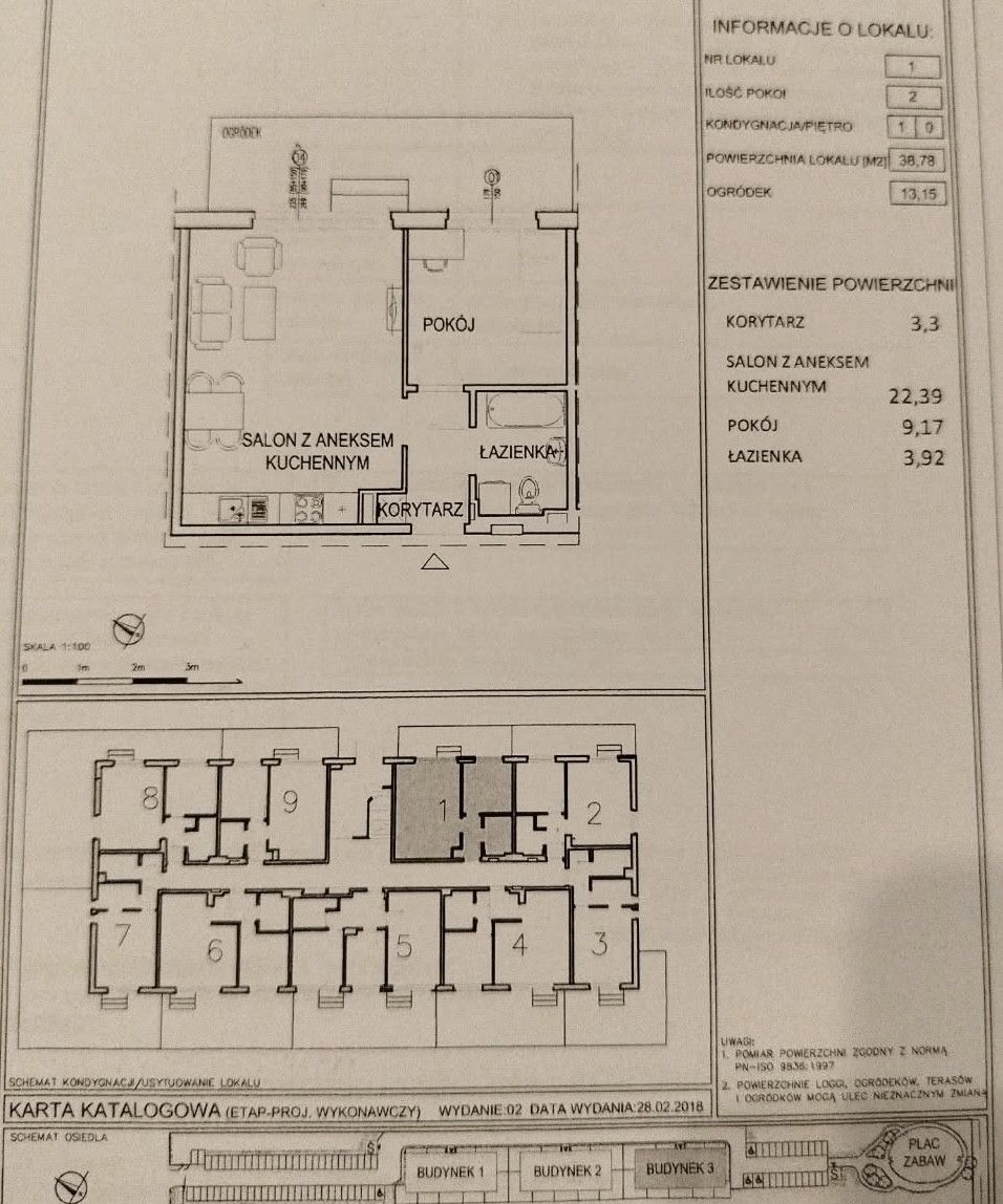 Na sprzedaż funkcjonalne i jasne 2-pokojowe mieszkanie o dokładnej powierzchni 38,76 m² wraz z przynależnym ogródkiem około 13 m². Nieruchomość zlokalizowana na kameralnym, zamkniętym i zadbanym osiedlu przy ul. Kartograficznej 82B, na warszawskiej Białołęce na samej granicy z Targówkiem. Bardzo spokojna i cicha okolica, z dala od ruchliwej ulicy.