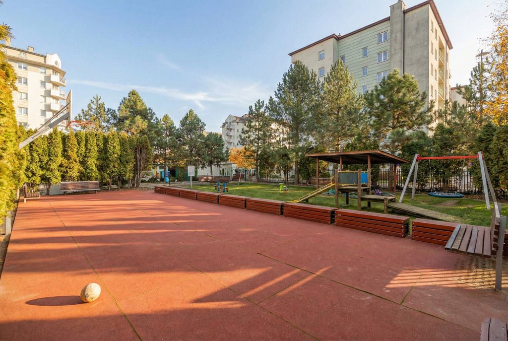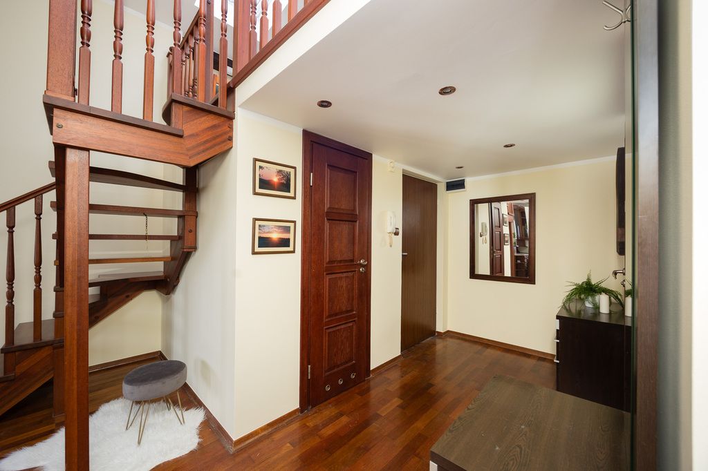 The apartment is situated on the top floor of an intimate residential building, within a gated community, including a parking space in the underground garage. The maximum ceiling height reaches an impressive 3.8 meters, creating an exceptional sense of space and light. The windows offer a beautiful panoramic view of the city center and stunning sunrises.