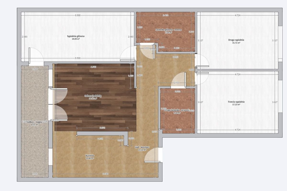 • 3 sypialnie, 2 łazienki, duży balkon typu loggia.